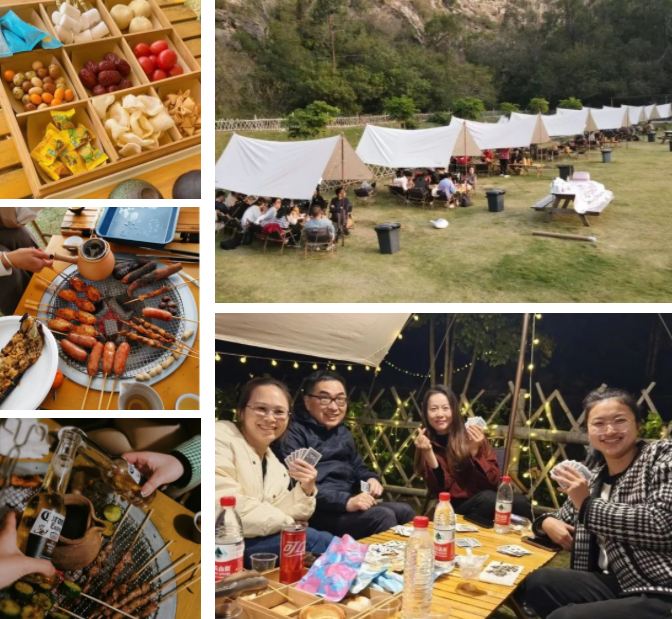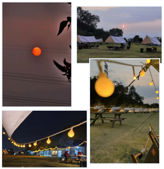 相聚的時刻,從來不缺少美食,17:30,燒烤晚餐開啟。令人驚喜的是,整片營地向西,一眼望去,夕陽正西下,我們一起遇見了這個春天震撼的落日景色。星星點點,斑駁光影照在天幕下,美食美酒伴圍繞,聽著小伙伴們述說各自精彩有趣的經歷過往。雖然時不時,還要接個工作電話,但是當下,我們在一起,就是最值得開心的。